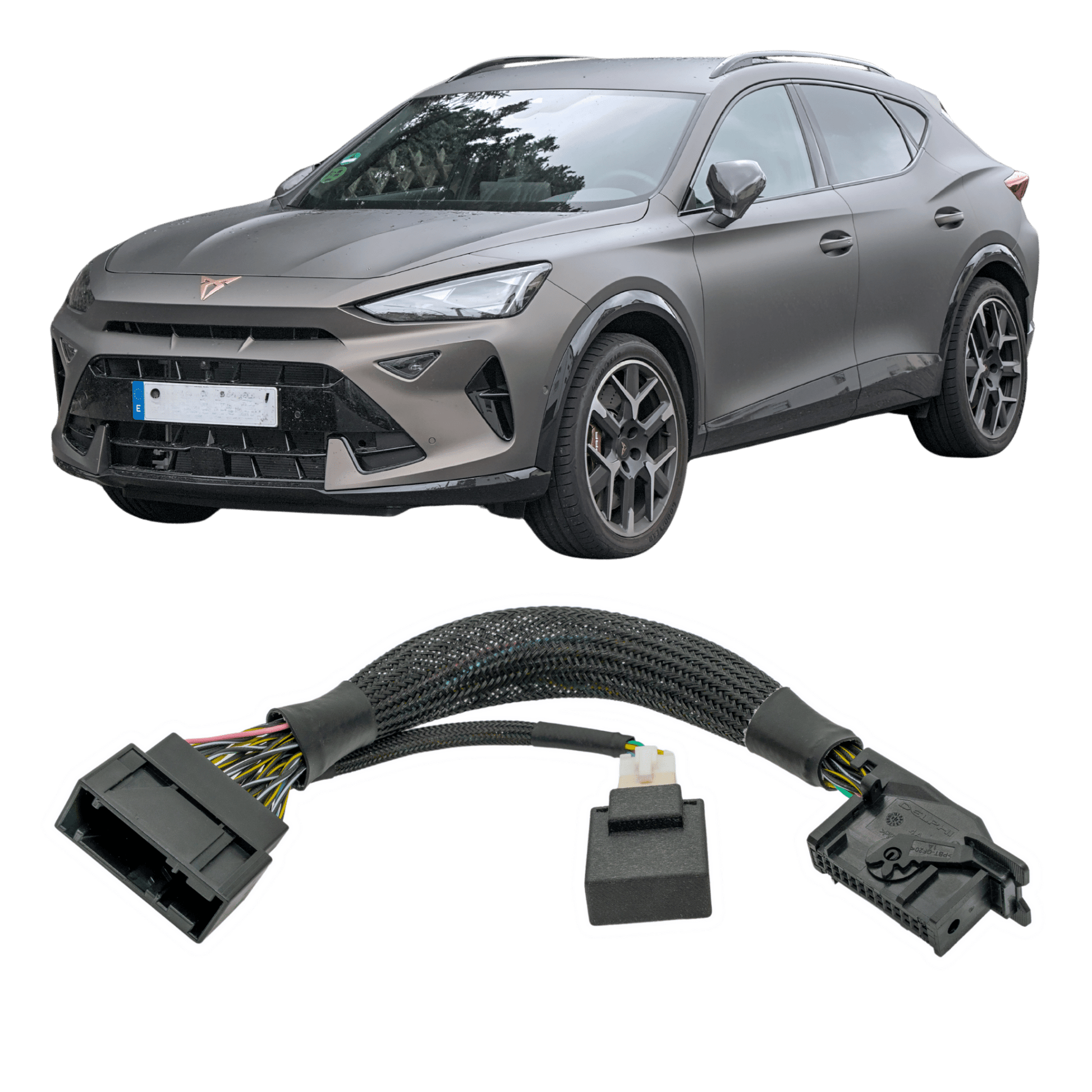 Kompatibilita: Tento modul je kompatibilní se všemi vozy Cupra Formentor po faceliftu vyrobenými od roku 2024. Podporované jsou všechny motorizace, kromě plug-in hybridu. Přiložený plug and play kabelový svazek je možné nainstalovat pouze do vozů s automatickou převodovkou DSG. U vozů s manuální převodovkou komplikuje instalaci spojkový pedál.