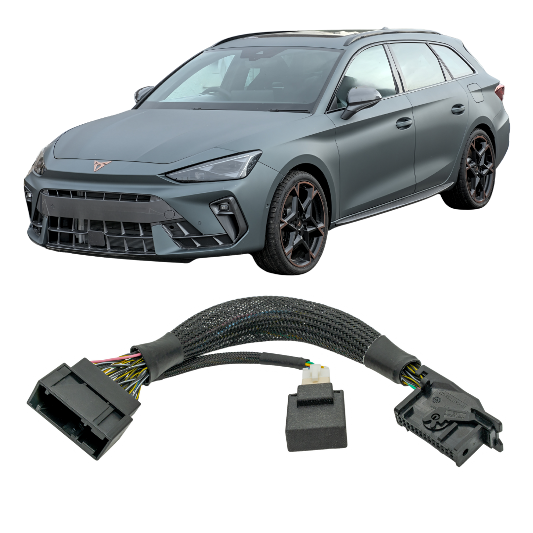 Kompatibilita: Tento modul je kompatibilní se všemi vozy Cupra Leon po faceliftu vyrobenými od roku 2024. Podporované jsou všechny motorizace, kromě plug-in hybridu. Přiložený plug and play kabelový svazek je možné nainstalovat pouze do vozů s automatickou převodovkou DSG. U vozů s manuální převodovkou komplikuje instalaci spojkový pedál.