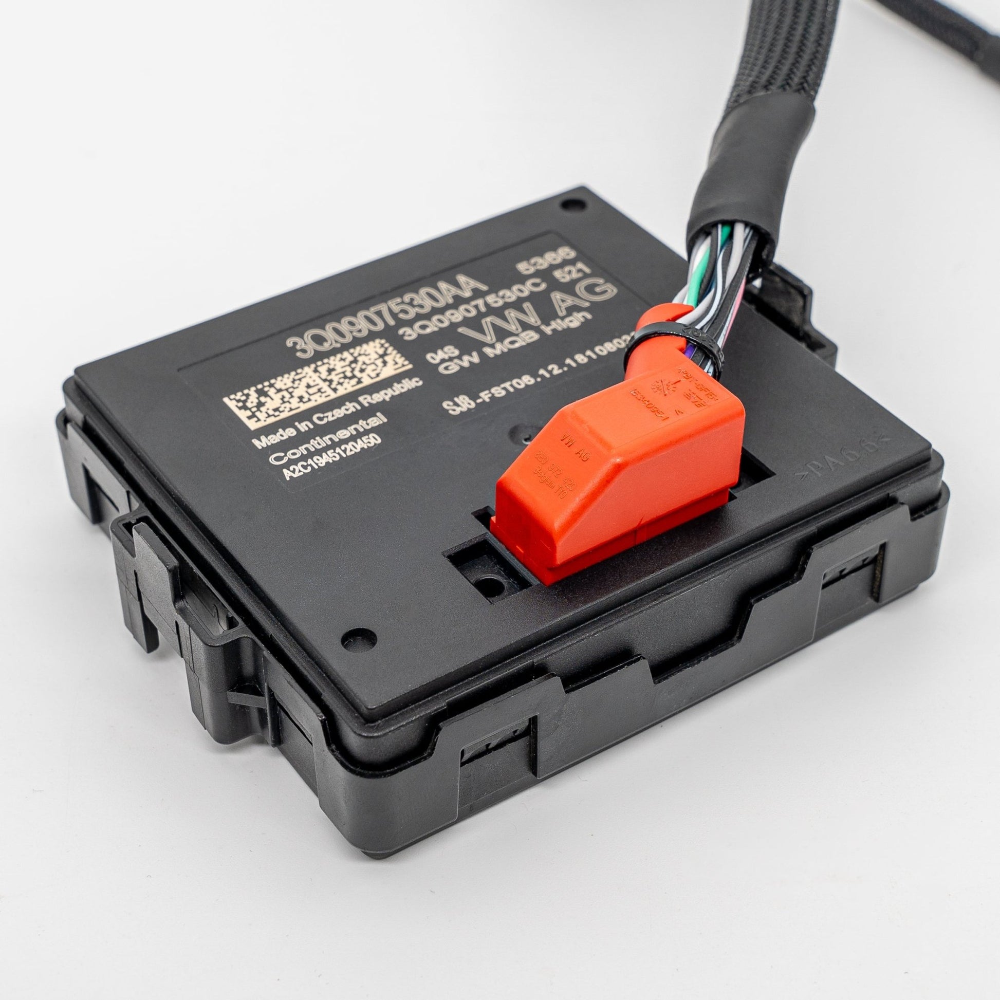 Přiložený plug and play kabelový svazek se zapojuje přímo do gateway vozidla. Funguje jako "prodlužka" a zároveň jako rozdvojka pro modul. Plní tedy důležitou roli a proto je nezbytné, aby byl naprosto spolehlivý. Proto jsme pro výrobu využili OEM komponenty - krimpovací terminály i konektorové housingy od firmy TE Connectivity, stejně jako koncern VW. Samotné kabely jsou od japonského výrobce Yazaki. Samozřejmostí je, že jsou na našem svazku všechny sběrnice CAN vedené jako kroucená dvojlinka a mají stejný průměr, jako originál, pro zajištění spolehlivosti.