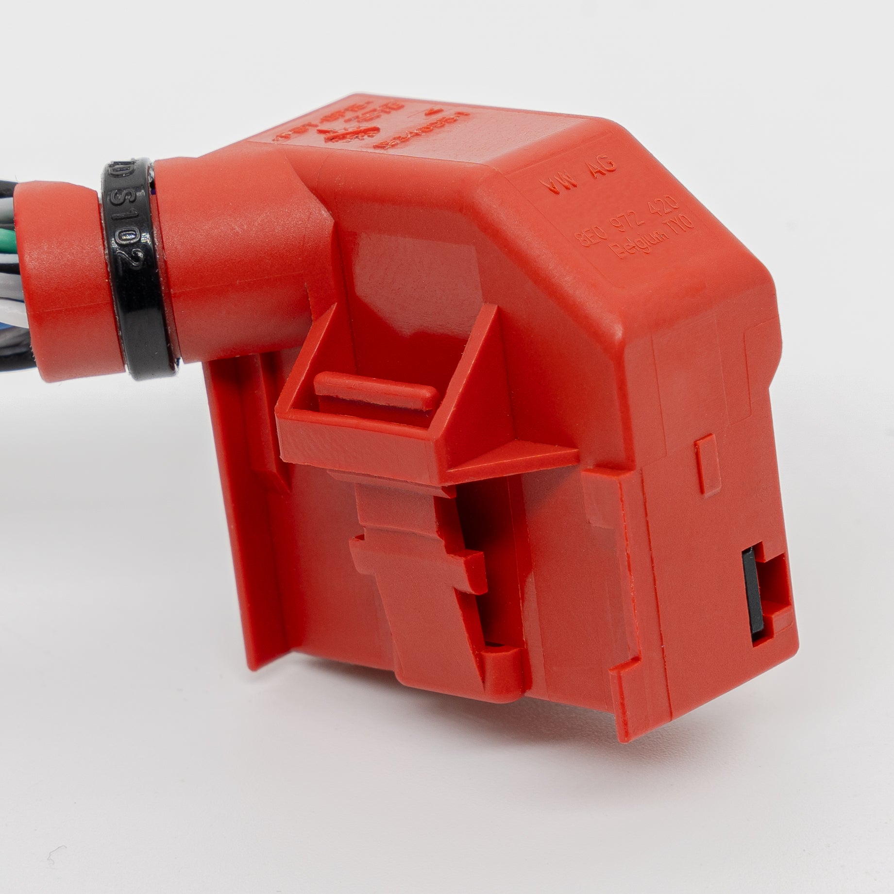 Přiložený plug and play kabelový svazek se zapojuje přímo do gateway vozidla. Funguje jako "prodlužka" a zároveň jako rozdvojka pro modul. Plní tedy důležitou roli a proto je nezbytné, aby byl naprosto spolehlivý. Proto jsme pro výrobu využili OEM komponenty - krimpovací terminály i konektorové housingy od firmy TE Connectivity, stejně jako koncern VW. Samotné kabely jsou od japonského výrobce Yazaki. Samozřejmostí je, že jsou na našem svazku všechny sběrnice CAN vedené jako kroucená dvojlinka a mají stejný průměr, jako originál, pro zajištění spolehlivosti.